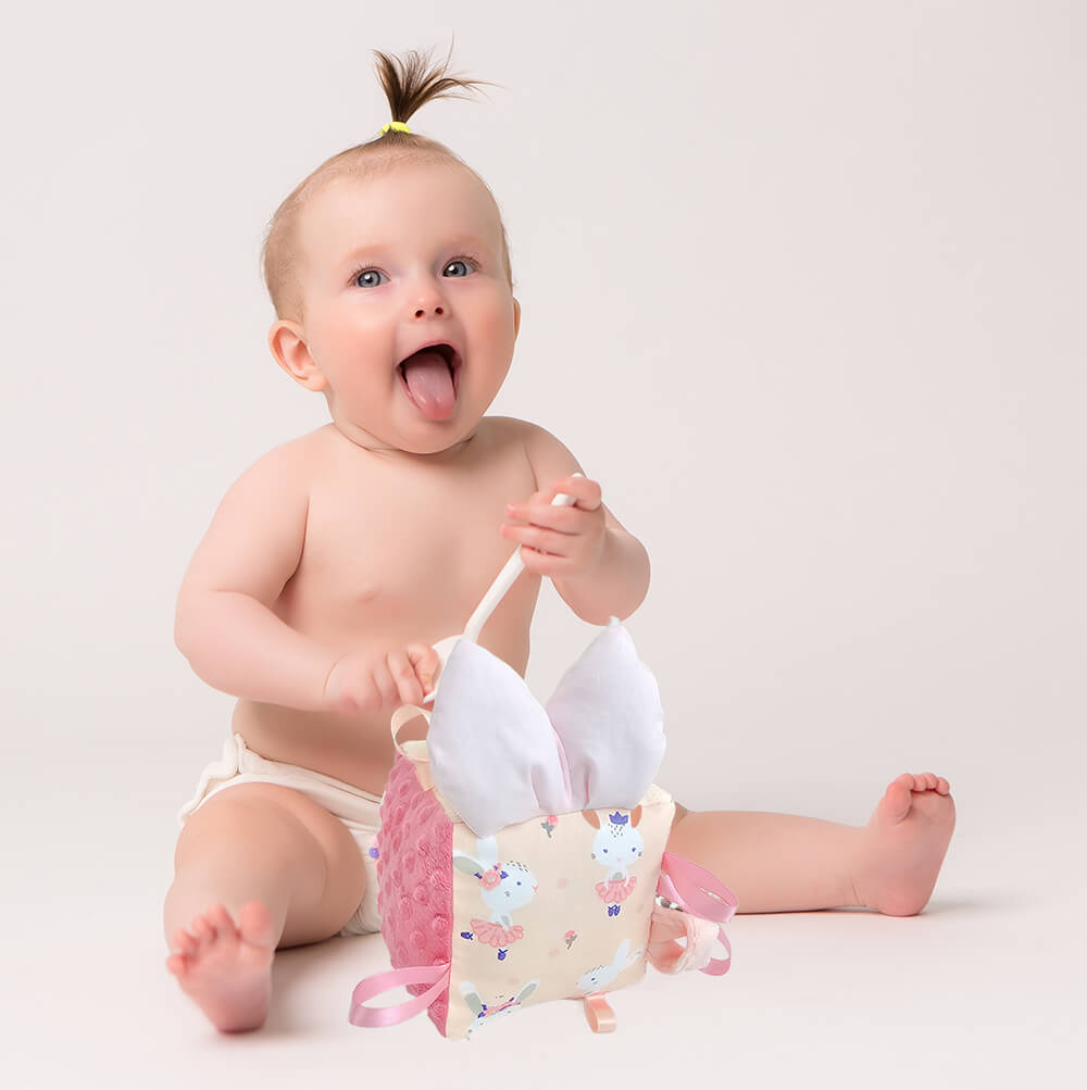 Cub textil pentru bebelusi ce conține multe activități și dezvoltă simțurile și motricitatea fină la o vârstă fragedă.