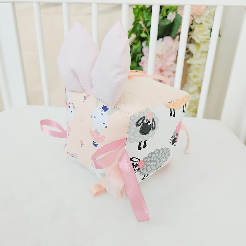 Acest produs încurajează copiii să-și antreneze abilitățile motorii. Pe părțile laterale ale cubului sunt amplasate diferite tipuri de activitati: urechiuse care scot zgomote cand sunt apasate, margele colorate, elemente de prindere din diferite materiale textile.