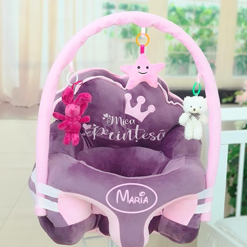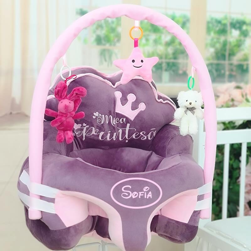 Fotoliu pentru bebe , confectionat din plus, umplut cu vatelina, arcada cu jucarii este detasabila.