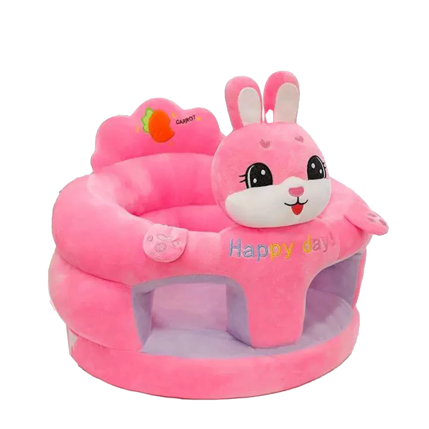 Cu un design ergonomic si prietenos, fotoliul este gata de utilizare fara montaj, oferind o experienta placuta si sigura. Se amplaseaza direct pe o suprafata plana si stabila, iar copilul poate fi asezat cu usurinta in interiorul spatiului generos al sezutului. Designul atragator cu animalute colorate incurajeaza jocul si stimularea vizuala.
