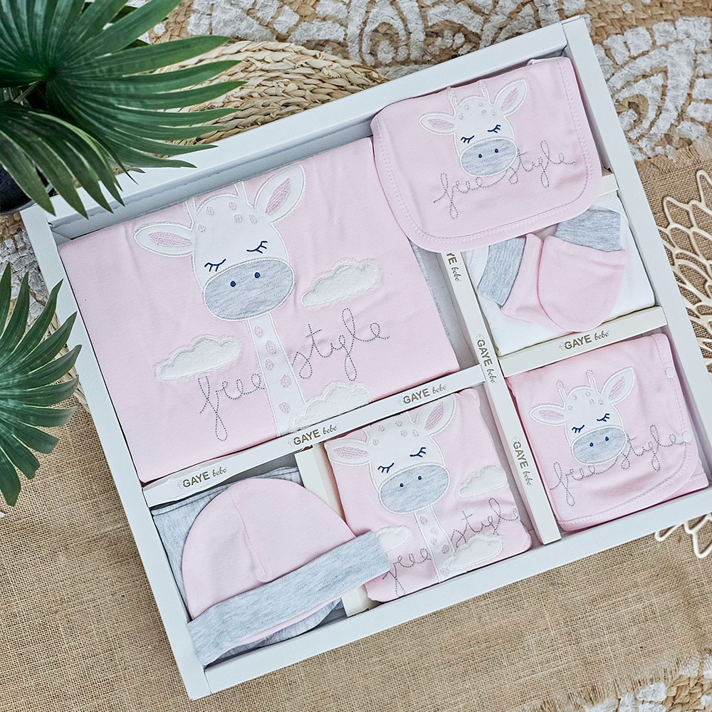 Setul este ambalat într-o cutie frumoasa, ceea ce il face potrivit pentru a fi oferit cadou la o nastere