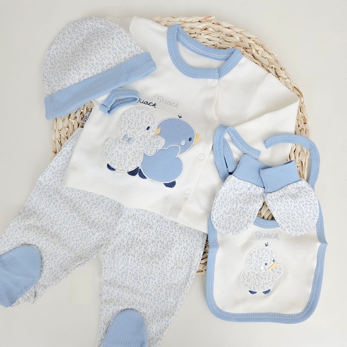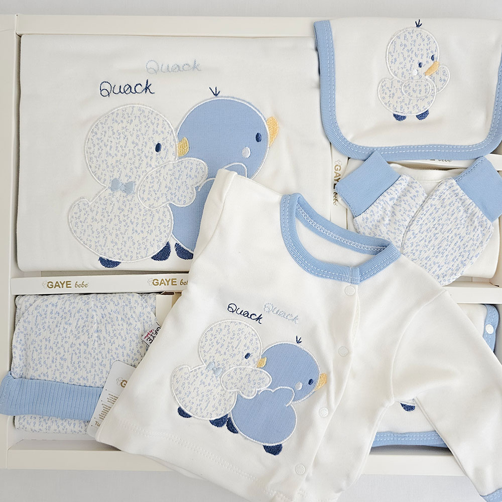 Cadou Nou-nascut: set maternitate, 10 piese, Bumbac 100%, Ratuste Bleu