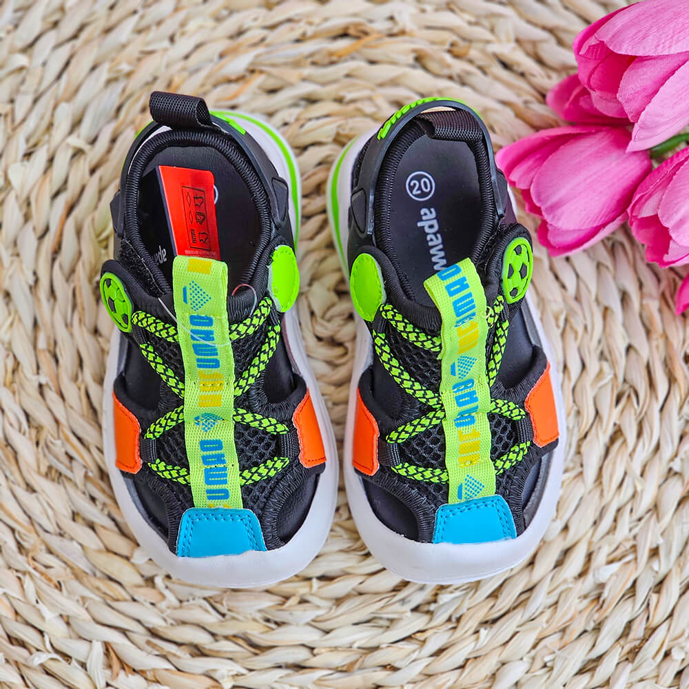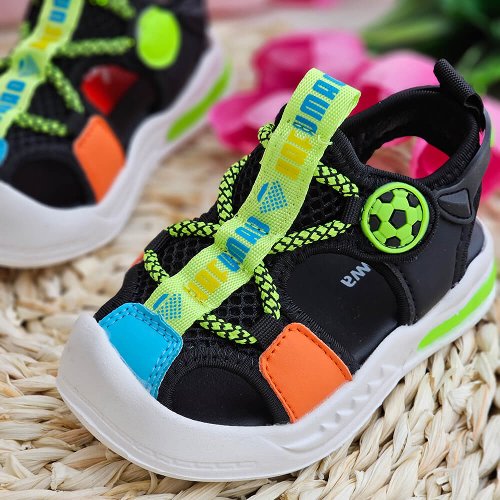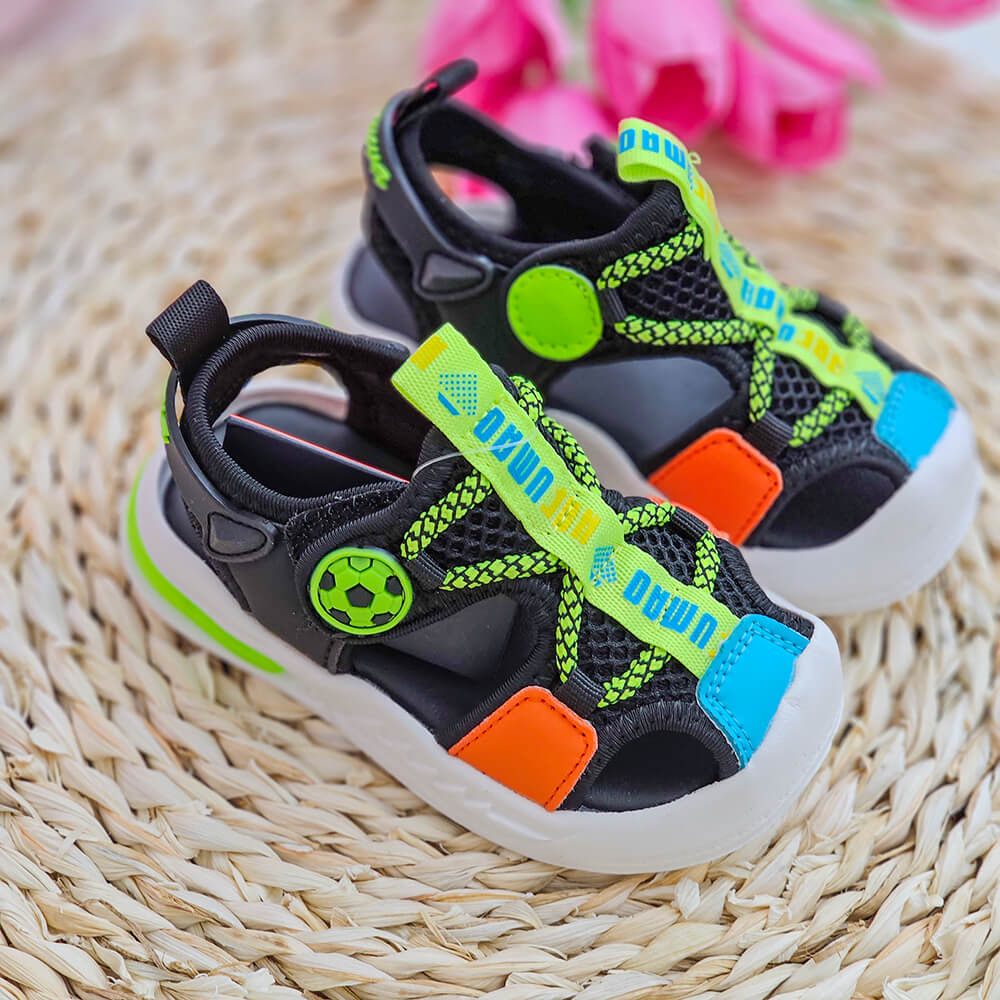 Aceste sandale au fost special concepute cu varfuri protejate pentru a proteja degetele de la picioare impotriva oricarei lovituri sau zgarieturi accidentale, facandu-le ideale pentru aventurile de zi cu zi ale copiilor.