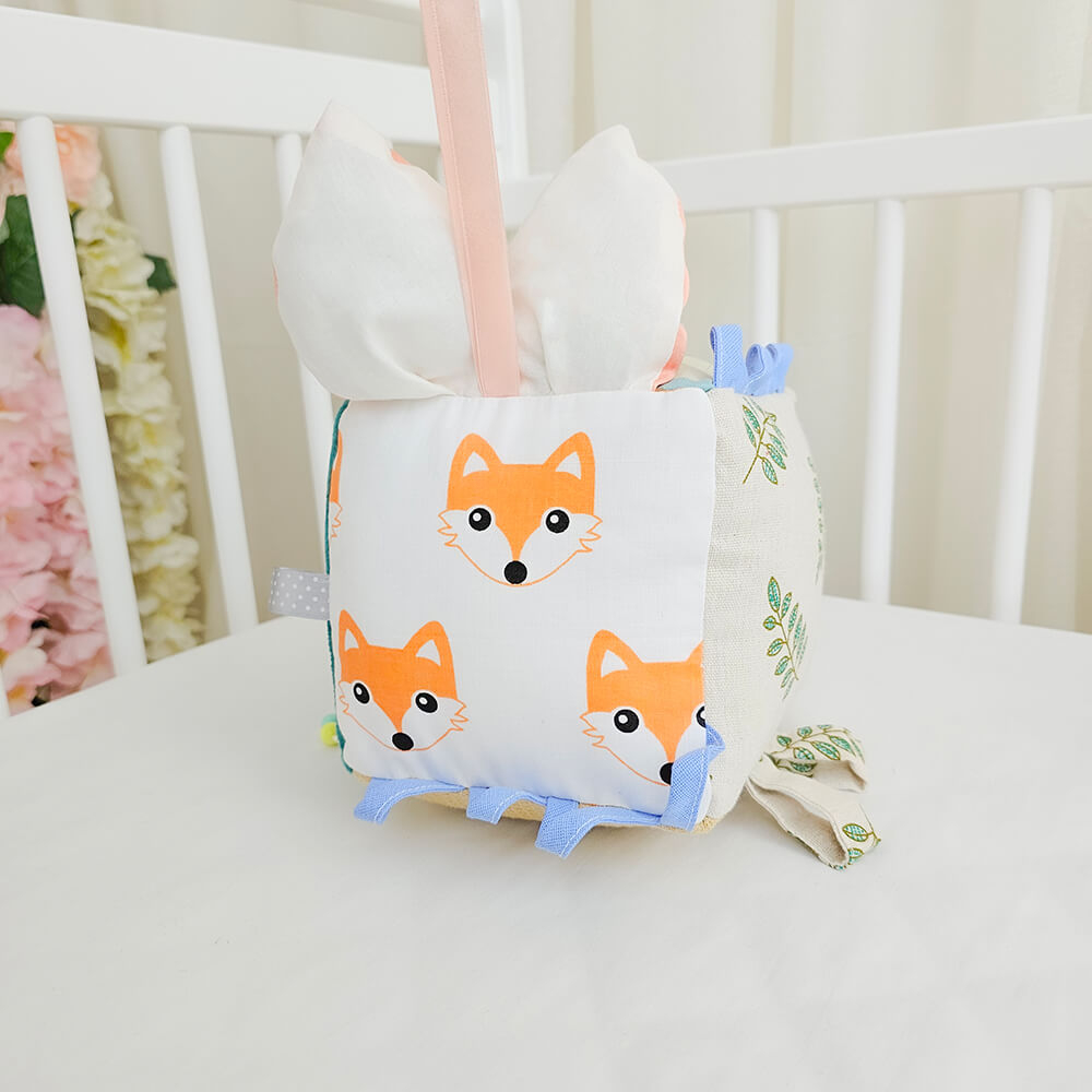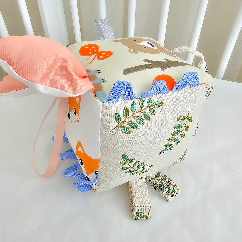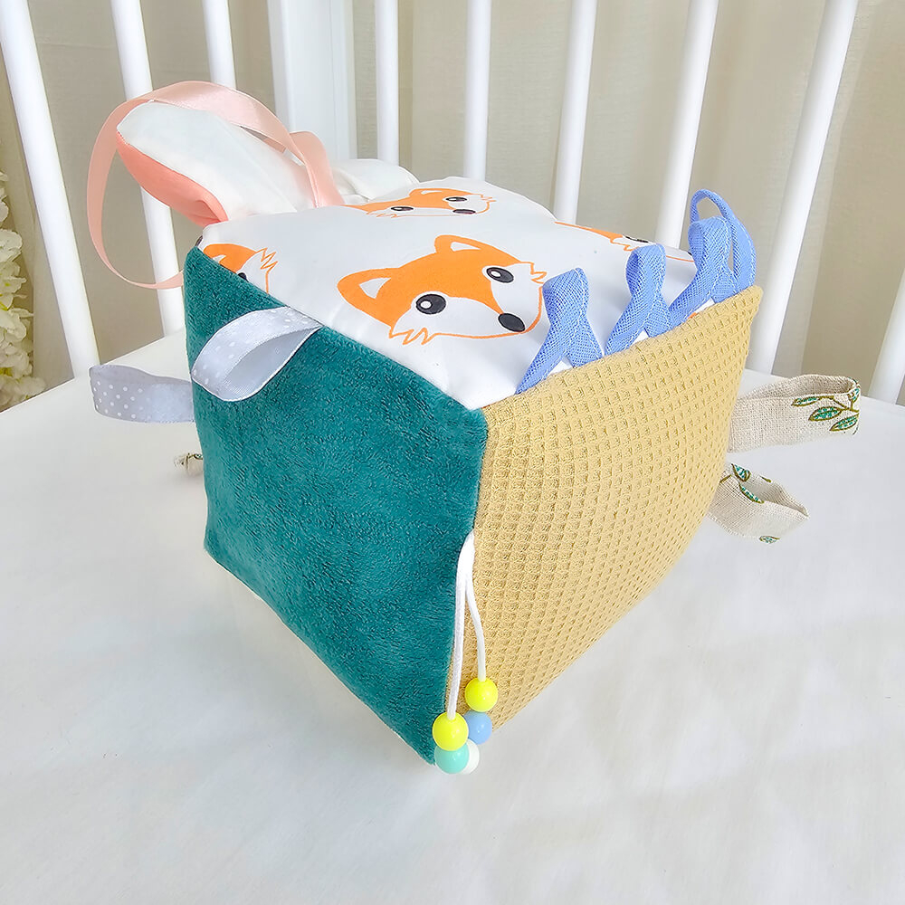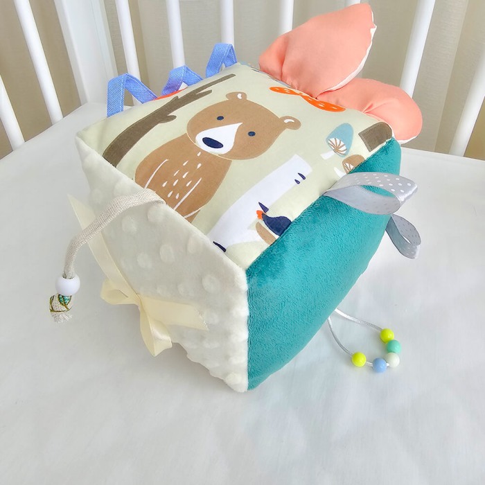 Cub textil pentru bebelusi ce conține multe activități și dezvoltă simțurile și motricitatea fină la o vârstă fragedă.