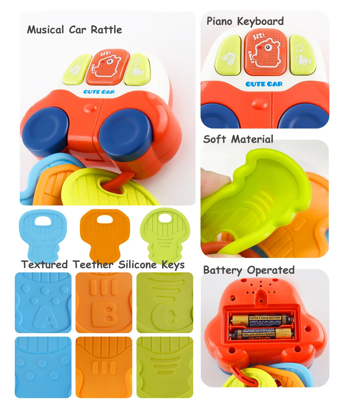 Aceasta jucarie nu este doar distractiva; ea este si practica. Brelocul sub forma de masina vine cu trei chei ce pot fi folosite si pentru a alina disconfortul bebelusului in timpul perioadei de dentitie. Materialul este confortabil si sigur pentru copii, ceea ce il face o alegere excelenta pentru cei mici.