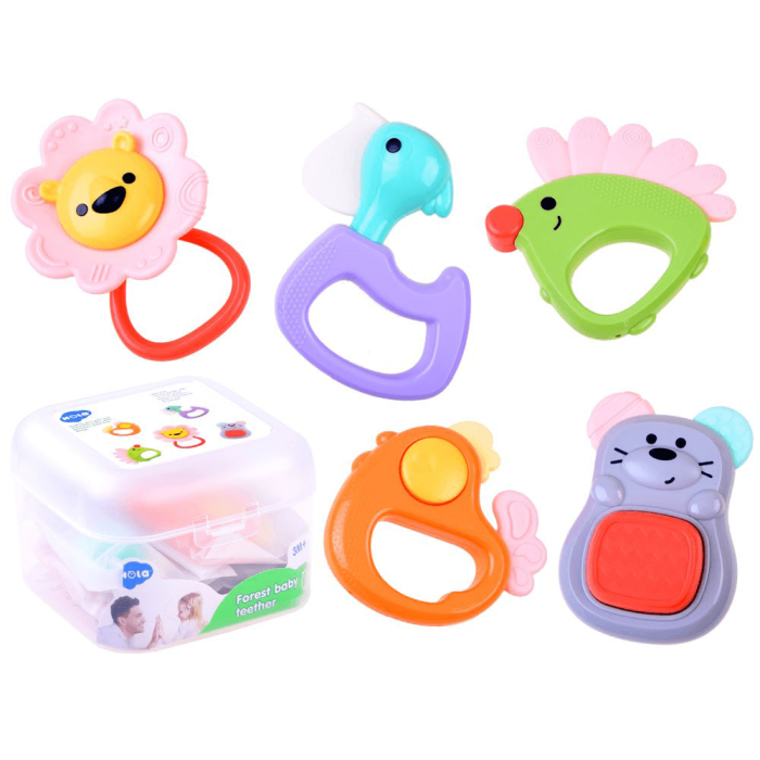 Set 5 jucarii zornaitoare pentru bebelusi animalute HOLA