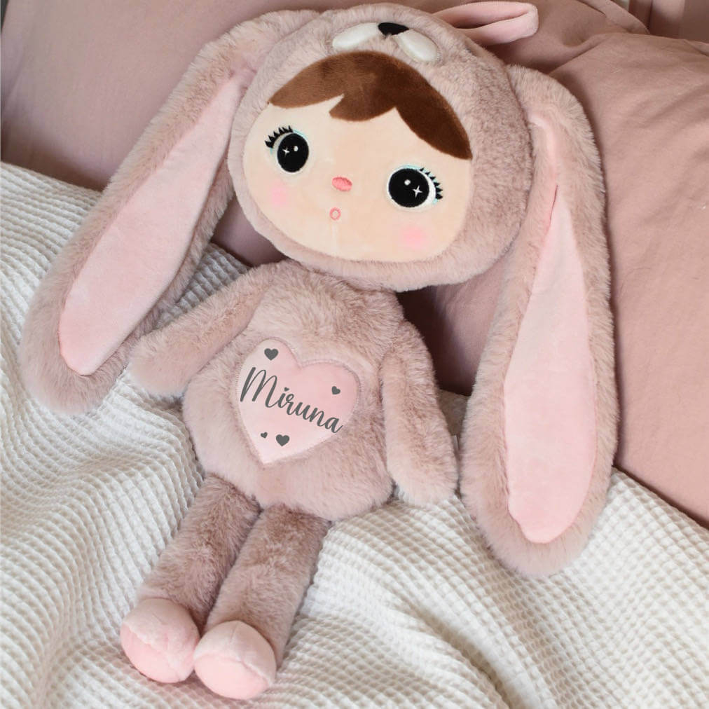 Papusa Iepuras personalizata cu nume, roz pudra